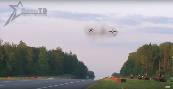 Белорусские летчики впервые отработали посадку на аэродромный участок автомобильной дороги в темное время суток. Летно-тактическое учение Военно-воздушных сил и войск противовоздушной обороны проходило на этой неделе в Червенском районе Минской области на трассе Минск — Могилев.