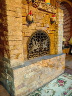 1) Отдельный дом общей площадью 82,1 кв.м с большой открытой террасой, баней, гостиной с камином, кухней, обустроенным санузлом, с возможностью проживания до 10 человек.