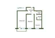 Общая площадь-38,3 м2, две изолированные комнаты – 8,8 м2 и 14,7 м2. Кухня 6,2 м2. Застекленный балкон. Санузел раздельный: ванная 2,1 м2, туалет 1,2 м2.