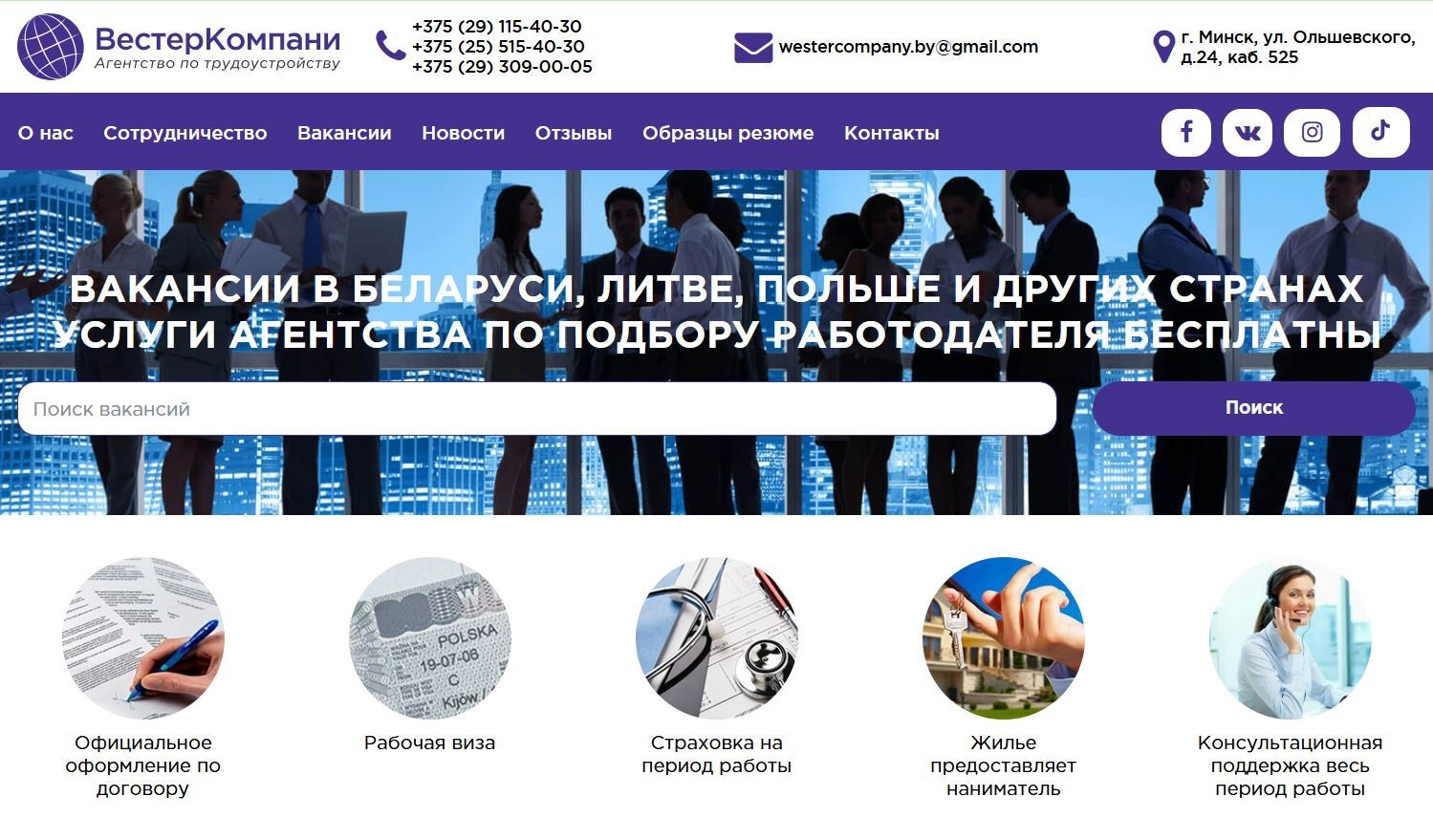 Кадровое агентство ООО "ВестерКомпани" – вакансии в Беларуси, Литве, Польше, Латвии, России.