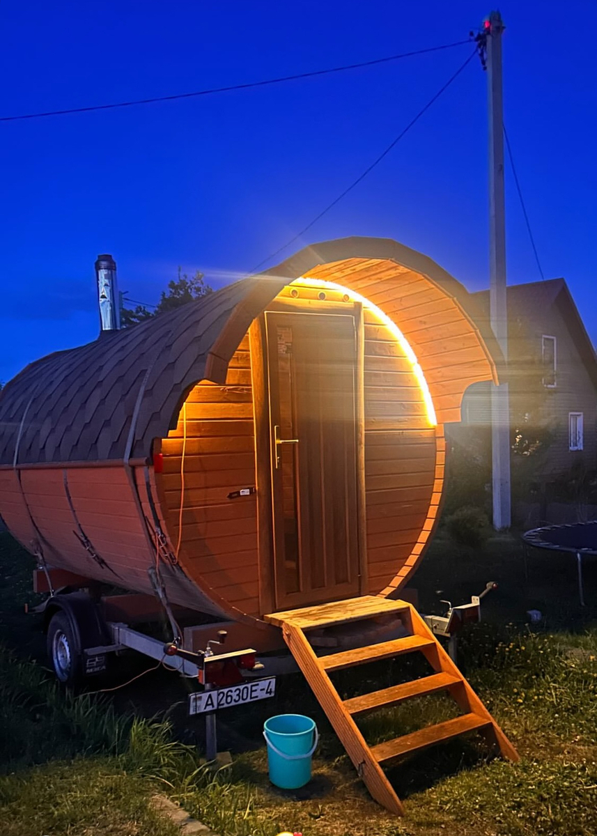 Мобильная баня-бочка, купель - на прицепе, это уникальная возможность для отдыха в любом удобном для вас месте; лес, озеро, река, дача или поляна.