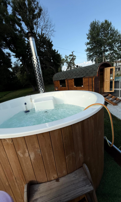 Это не просто бочка. Это полноценная баня-джакузи: горячая вода, пар, купель с подогревом, удобные скамейки, всё как в настоящей бане — только без хлопот. Никаких ремонтов, никаких разрешений. Заказал — привезли. Попарился — увезли.
