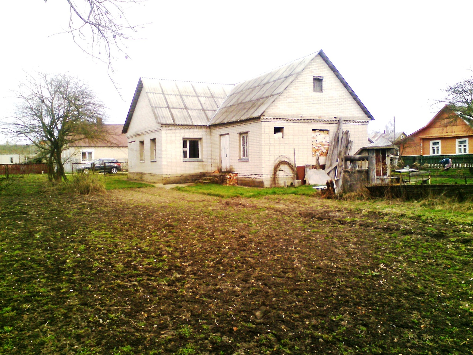 Продам недостроенный дом. Основное строение деревянное, обложенное кирпичом. Пристройки с лицевой и тыльной стороны кирпичные. К участку подведён газ. Имеется центральный водопровод по улице, к дому не подведён. Требуются работы по внутренней перепланировке дома и капитальному ремонту. Площадь 59,3 кв.м. по документам, на самом деле больше. Находится в д. Малейковщизна по ул. Озёрная, в 500 метрах от 3-го Лидского озера. В доме имеется два подвала. Площадь земельного участка 0,1581 га. На участке имеется колодец, 2 яблони, 4 сливы, вишня, малина смородина
