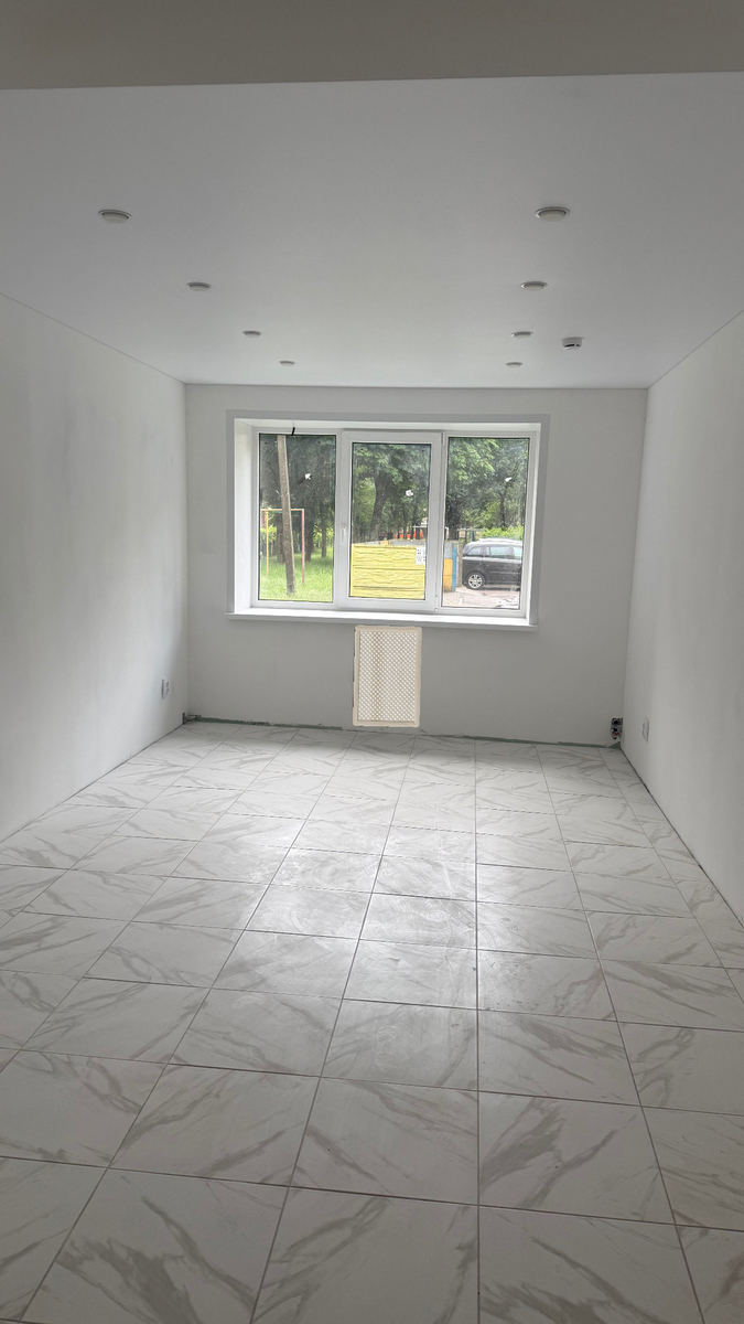 Сделан ремонт: потолки натяжные, на полу плитка, стены белые, возможность перекрасить в свой цвет, электрические счетчики. Отопление, электричество, вода холодная, санузел, пожарная сигнализация, интернет.