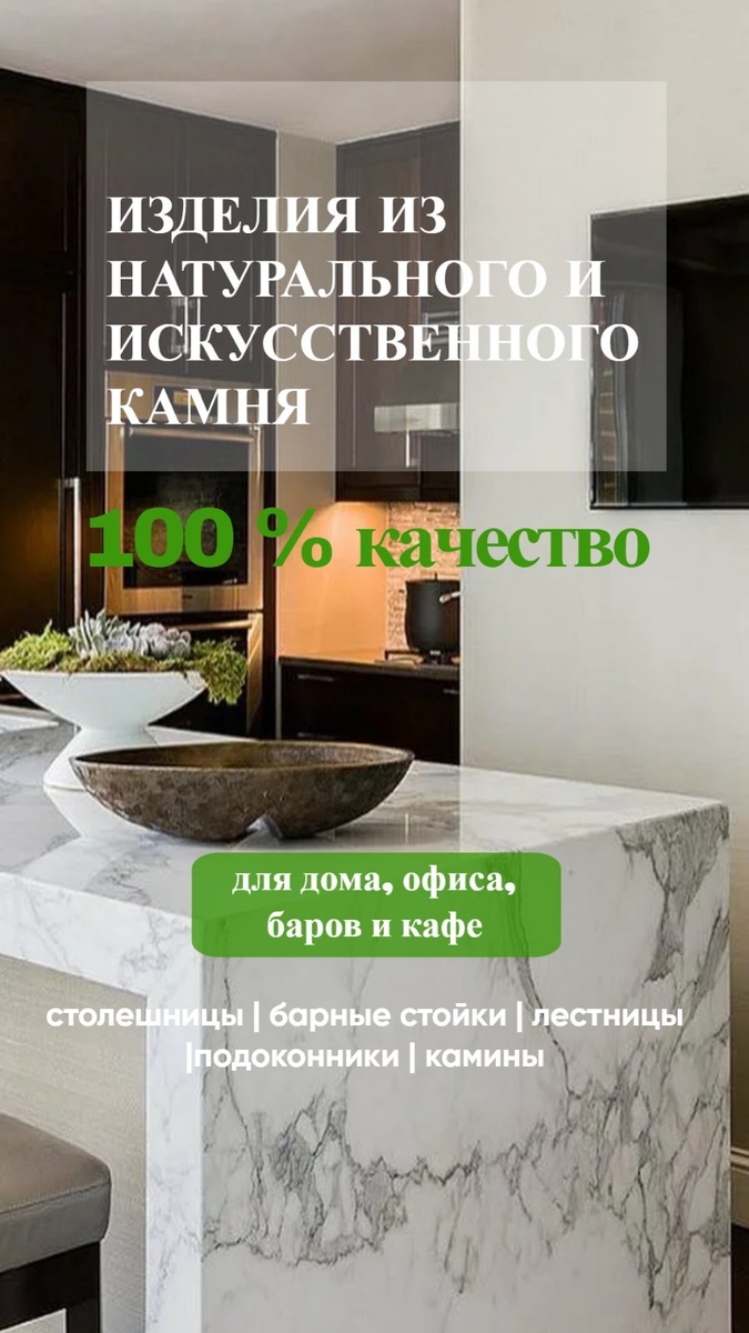 У нас Вы можете заказать столешницы, подоконники, камины из натурального (гранит, мрамор, травертин, оникс) и искусственного (акриловый камень, кварцевый камень, микрокристаллический керамогранит) камня по приемлемым ценам, а также их монтаж.