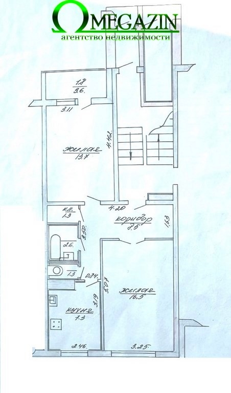 Общая площадь 51.2 м², жилая 30.2 м², кухня 7.3 м². Лоджия.