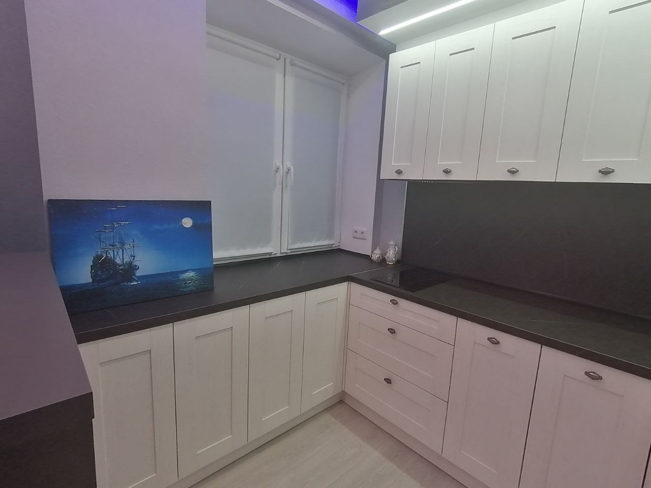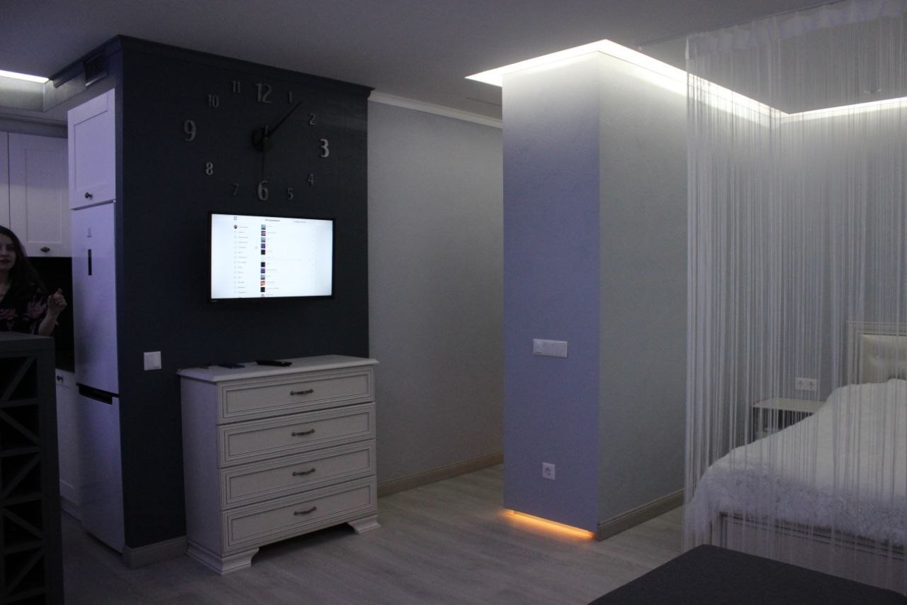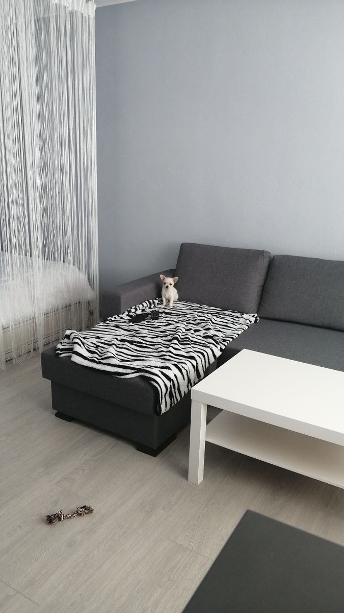 В квартире вся мебель и техника новая.