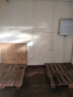 Фундамент бетонный, стены утепленный каркас типа "сэндвич", перекрытия профильные тубы, крыша профилированные листы, полы линолеум, проемы оконные металлические рамы с остеклением, проемы дверные металлические, отопление электрообогрев, водопровод, канализация , электропроводка