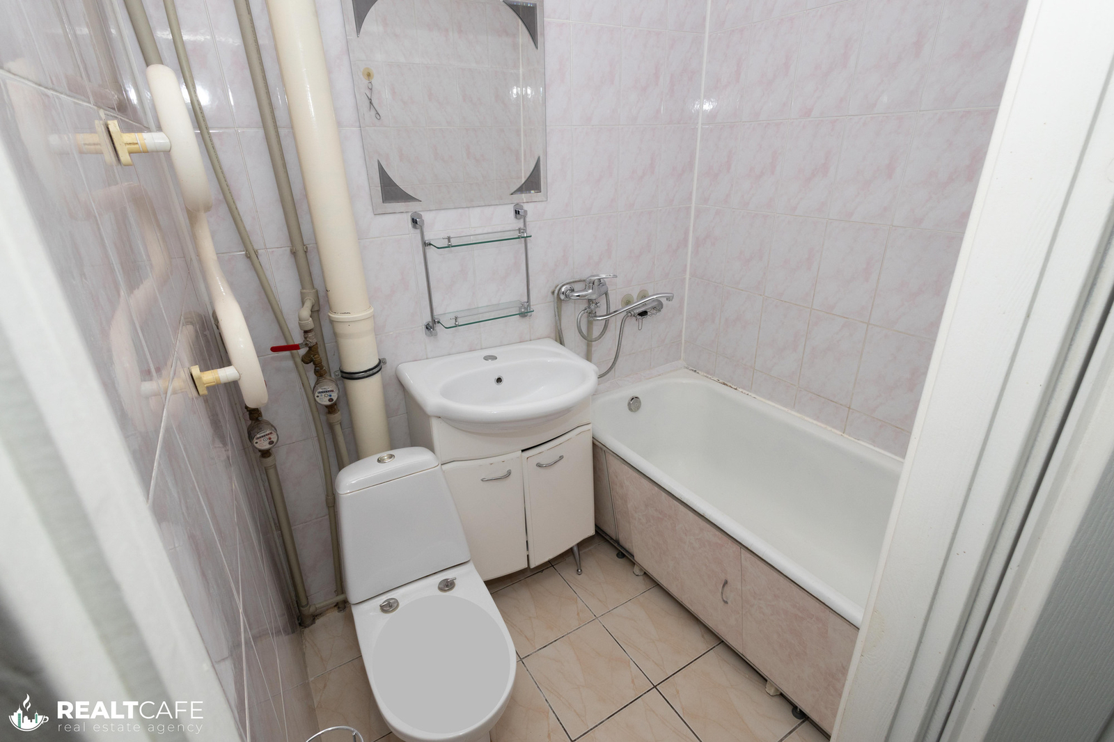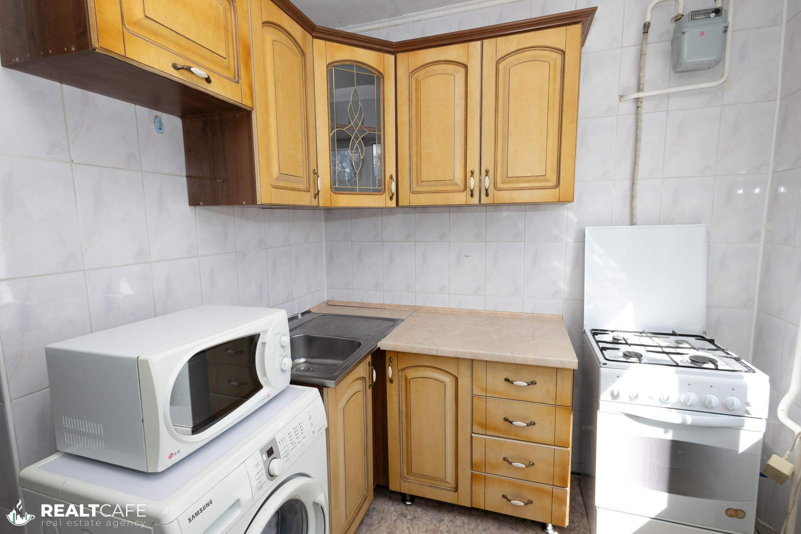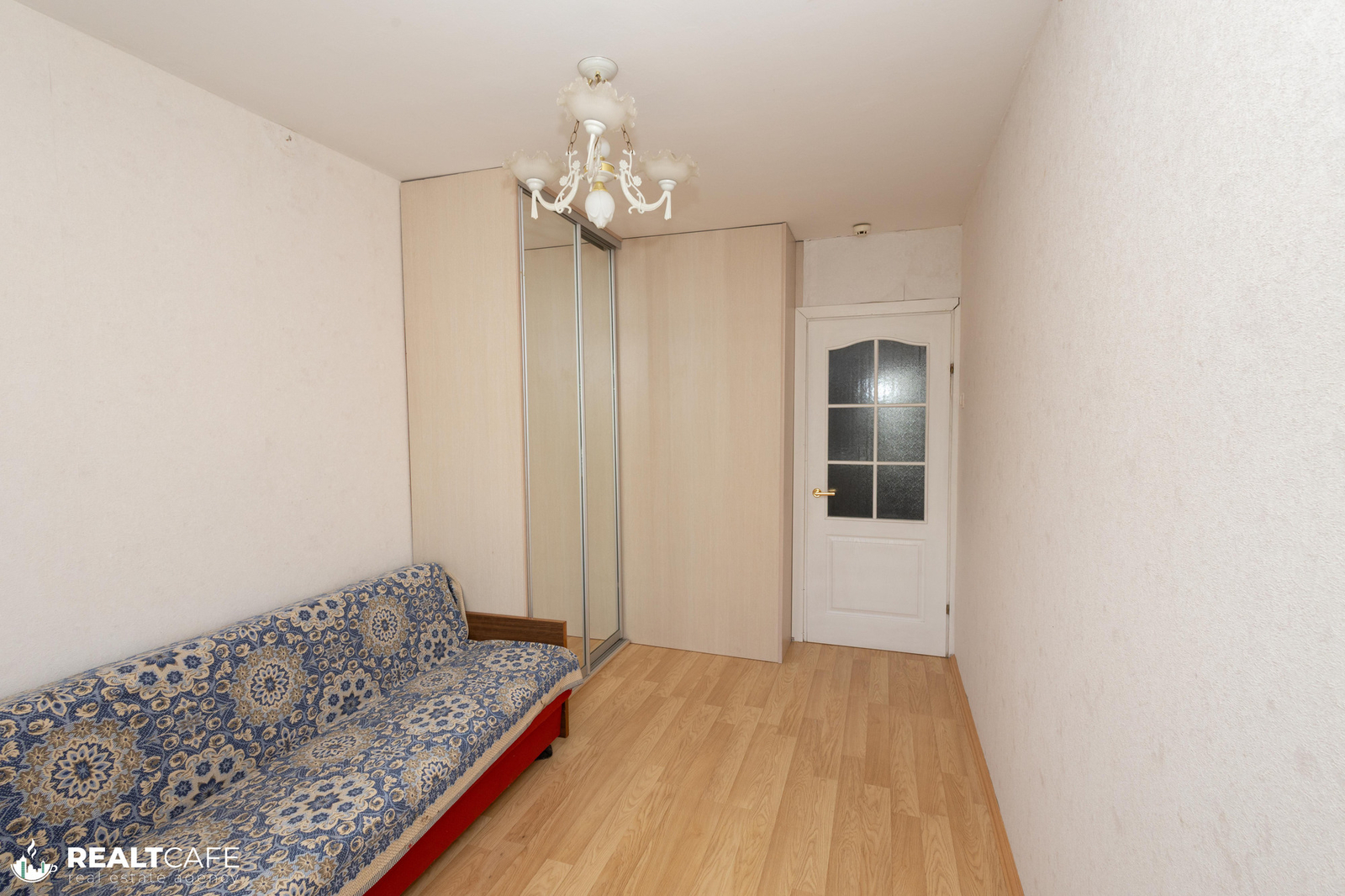 Общая площадь- 42,5 кв.м., изолированные комнаты – 17,2 кв.м. и 10,8 кв.м., кухня - 5,6 кв.м., совмещенный санузел - 2,7 кв.м. В спальне оборудован шкаф-гардеробная. Установлены стеклопакеты. Светлая и уютная квартира.