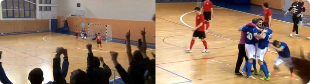 Но на последних минутах Виктор Тарчило стратегически берёт тайм-аут, результатом которого за 13 секунд до конца первого тайма явился гол Жигалко! Трибуны взрываются. Обе команды уходят на перерыв с равным счётом: 1 - 1.