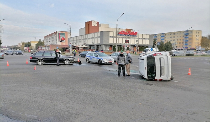 Как сообщили в Лидской ГАИ, Renault двигалась по проспекту со стороны ул. Кирова. На перекрестке с улицей Ленинской водитель проигнорировал красный сигнал светофора и столкнулся с Audi, которая ехала на разрешающий сигнал светофора по Ленинской со стороны путепровода.