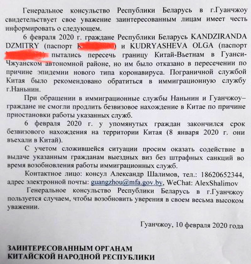 — Думаю, китайская сторона сама пока не знает, как их специалисты будут поступать в данном случае. На данный момент все ждут, что ситуация с вирусом стабилизируется, — рассказывает Александр Шалимов, консул Генерального консульства Беларуси в Гуанчжоу. — Информации, когда начнут работать китайские миграционные службы, нет, и нам даже не у кого уточнить, поможет ли нашим туристам данная дипломатическая нота. Мне кажется, все должно быть в порядке. Белорусские граждане, которые оказались в похожей ситуации в других регионах Китая, при содействии Генконсульства сейчас уезжают через аэропорт города Гуанчжоу, и проблем у них не возникает.