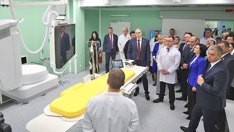 По словам заместителя премьер-министра РБ Владимира Караника, Гродненская область одной из первых в стране завершила формирование сети опорных клиник. «Они созданы на базе райбольниц в Островце, Волковыске и Лиде, а также в Гродно. Их технические возможности позволяют в экстренных случаях обеспечить правило «золотого часа», получить жителям регионов необходимую высокотехнологичную помощь, которая еще десятилетие назад была доступна в основном только в столице. Впереди кропотливая работа по освоению всех методик, созданию четкой логистики движения пациентов. Уверен, что коллектив Лидской больницы, который уже не раз демонстрировал свои способности осваивать новое оборудование, успешно справится с поставленными задачами, обеспечит качественное оказание медицинской помощи. Важно, что ее получат не только лидчане, а и жители соседних районов. Новый ангиографический комплекс, который открывается сегодня, позволит оказывать широкий спектр медпомощи, в первую очередь кардиохирургической при нарушениях ритма и кровоснабжения миокарда», – рассказал вице-премьер.