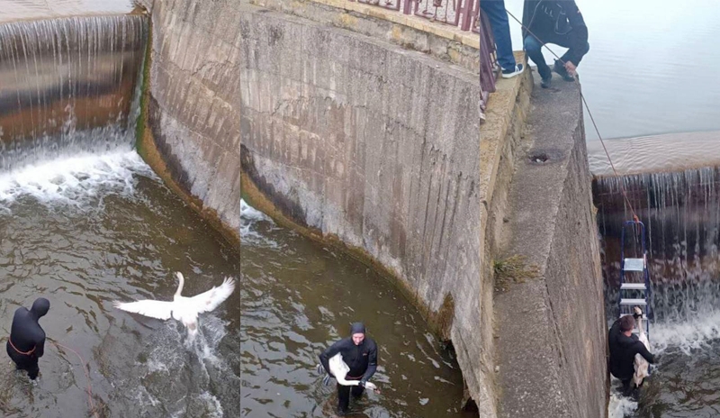 Команда выдвинулась на помощь, и в итоге лебедя благополучно удалось извлечь из водозабора.