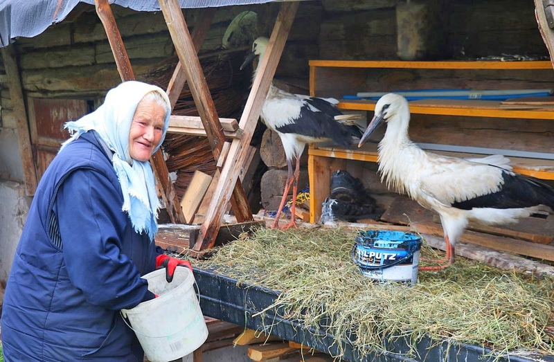 Теперь под крышей сарая Янины Буракевич поселились два новых жильца – маленькие аистята. 77-летняя пенсионерка собственноручно смастерила им временное жилье, а главное – взяла на себя заботу об их пропитании. Каждый день она покупает своим подопечным свежую рыбу, а те уже узнают ее голос и радостно встречают, громко шипя и пища при виде еды.
