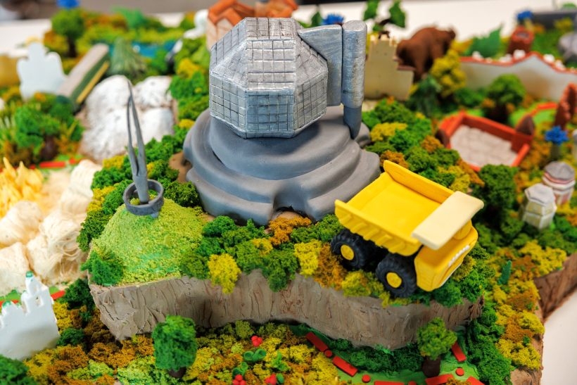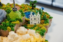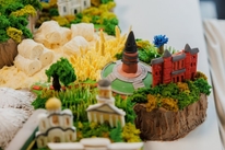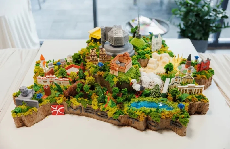 В Минске испекли большой торт в виде карты Беларуси, на которой отображены символы страны, в том числе Национальная библиотека, Лидский замок, Брестская крепость, зубр, аист, самосвал БелАЗ.
