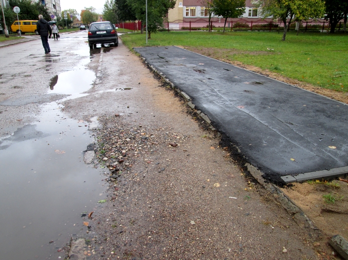 Действительно, если особенно не присматриваться, то и не скажешь, что тут должен быть тротуар.