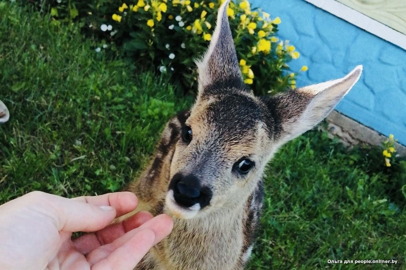 В июне рабочие косили трактором траву вдоль дороги в Новогрудском районе. Тогда косилка и переработала сидевший в растительности выводок косули. Двое телят — насмерть, у третьего почти оторвана нога. А дальше началось сплошное везение. Рабочие не промолчали, сообщили о случившемся в инспекцию природных ресурсов и охраны окружающей среды. Там, вместо того чтобы усыпить обреченное животное, начали искать варианты. Так детеныш оказался у Ольги. У нас очередная история с плохим началом, хорошим продолжением и без конца.