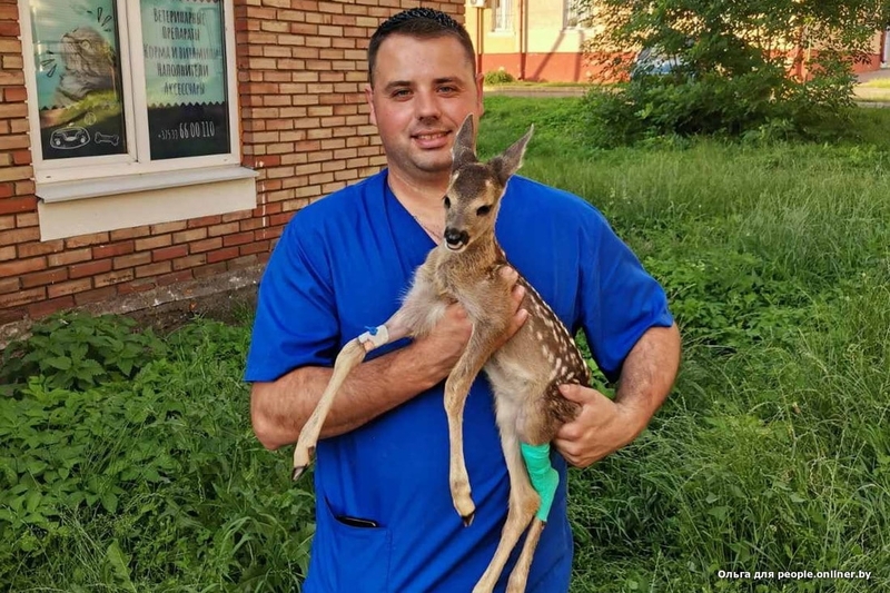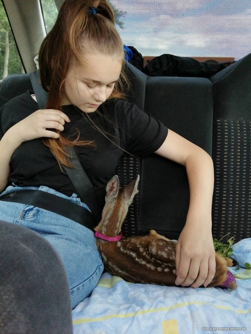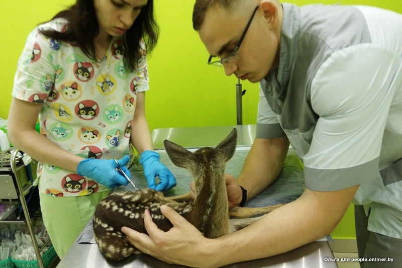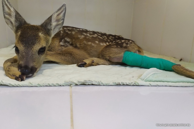 Крохотную самку весом килограмма три передали Ольге 23 июня. Но нельзя просто так забрать дикое животное и отдать гражданскому человеку, поэтому быстро оформили акт изъятия (из природы) и передачи. У детеныша на тот момент были разодраны мышцы, сломана кость, нога висела на шкуре. Ольга принялась звонить ветеринарам в Лиду. Согласились приделать ногу в ветцентре «Кот Бегемот». Вообще-то — невиданное занятие, косулям ноги приделывать, но терять все равно нечего было.