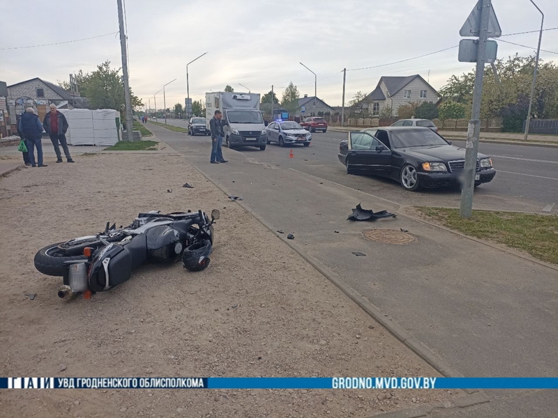 1 мая около 19:00 на улице Свердлова в городе Лида 40-летний водитель, управляя автомобилем Mercedes, при перестроении с крайней левой полосы движения в правую не уступил дорогу и допустил столкновение с движущимся в попутном направлении в крайней правой полосе движения мотоциклом Honda под управлением 40-летнего водителя.