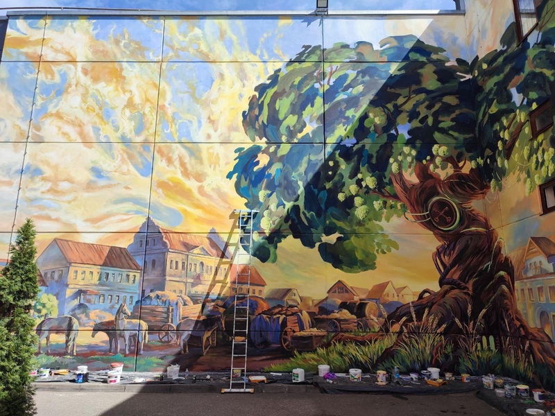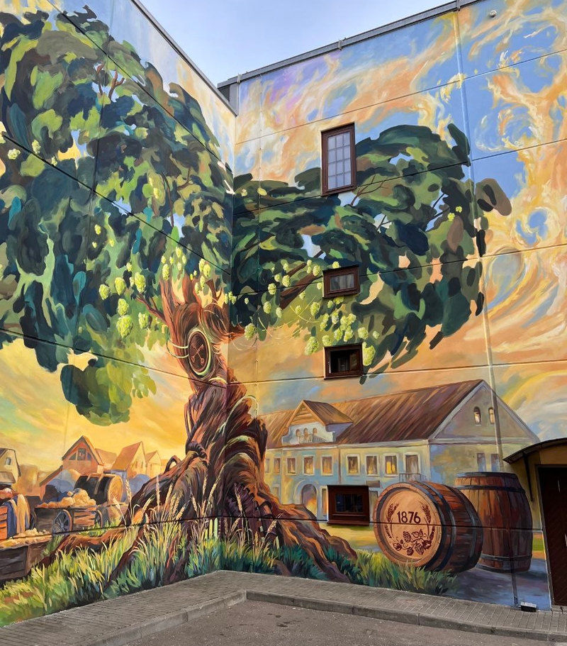 Новы арт-аб’ект з’явіўся на сцяне ля Музея лідскага бровара, аб гэтым паведамляе «Лідскае піва».