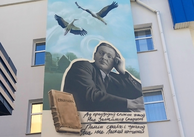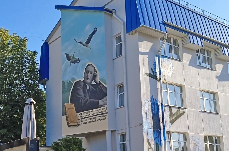 Асаблівую ўвагу і погляды мінакоў прыкоўвае мурал, які з'явіўся на тарцы будынка, з выявай паэта Янкі Купалы, імя якога носіць бібліятэка. «Ад прадзедаў спакон вякоў…» – радкі з верша «Спадчына» надаюць кампазіцыі завершаны выгляд.