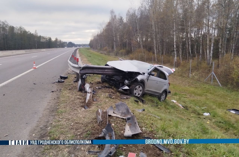Установлено, что 21 октября около 15:20 на автодороге М6 «Минск — Гродно» водитель 1959 года рождения, управляя автомобилем Hyundai, двигался со стороны столицы в направлении города Гродно, вблизи деревни Залейки Ивьевского района предварительно уснул за рулем автомобиля и съехал в правый по ходу движения кювет, где совершил наезд на дорожное ограждение.