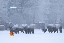 Адзначаецца цікавы факт падчас здымкі: не прайшло і паўгадзіны з моманту, як работнікі гаспадаркі даставілі прычэп з кормам, як статак зуброў ужо сабраўся ля кармушак, гатовы да трапезы.