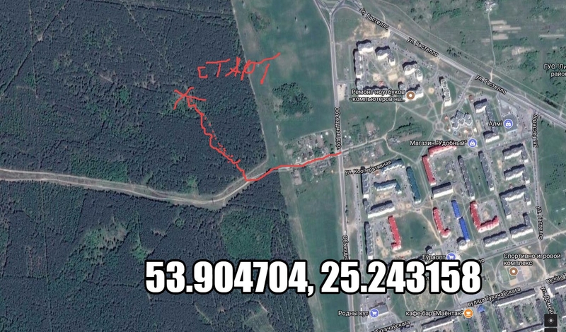 Координаты места старта: 53.904636, 25.243003.