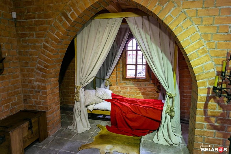 Кровать с балдахином, средневековые стулья, камин – все это работает как фотозоны. Можно присесть, сфотографироваться и почувствовать себя средневековым князем. Гости также могут сыграть в «королевские» шашки или шахматы.