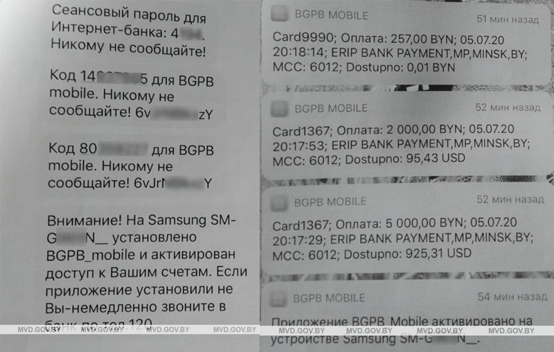 В этой связи рекомендуется ни под каким предлогом не сообщать неизвестным реквизиты своих банковских платежных карт, присланные коды SMS-сообщений, реквизиты доступа в интернет-банкинг, личный номер и паспортные данные.