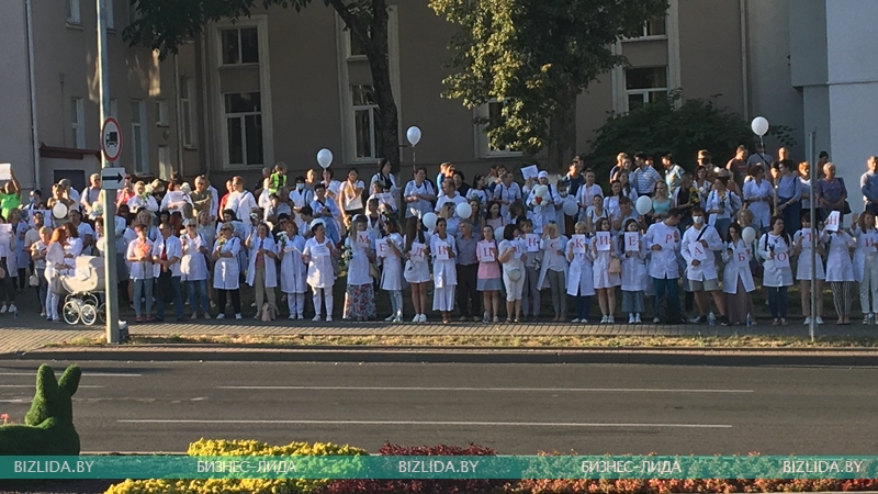 В Лиде медики 14 августа вышли на мирную акцию возле Лидского райисполкома.