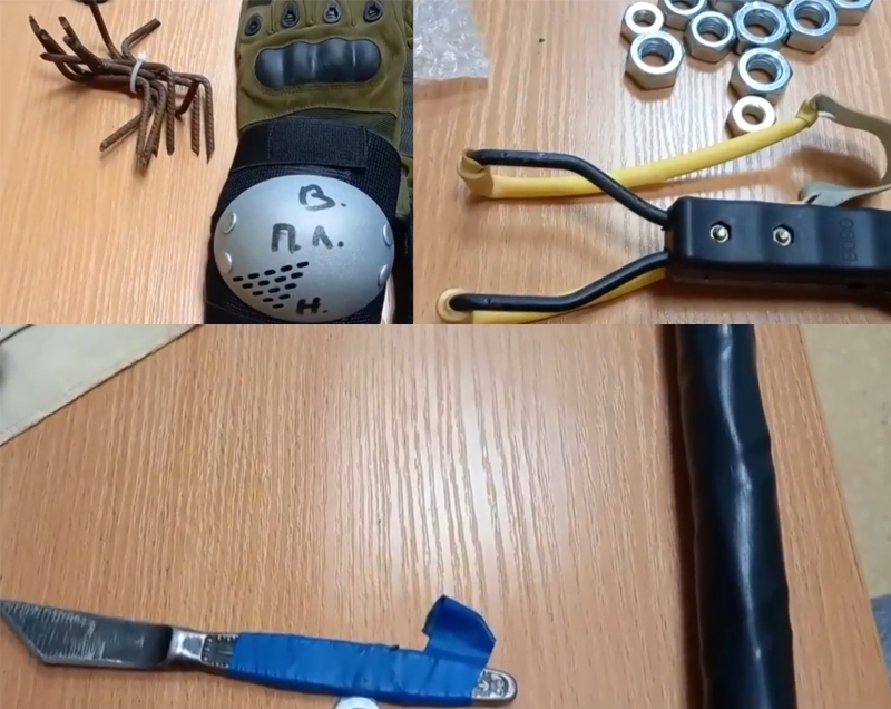 В столицу он приехал не с пустыми руками. Самодельные железные ежи и нож предназначались для повреждения шин в милицейских автобусах, рогатка и болты – чтобы разбить стекла в служебном транспорте. Также у лидчанина изъяли дубинку с железным стержнем из арматуры.