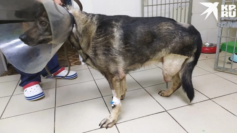 «Как нам рассказали, ее год держали на привязи и плохо с ней обращались. Как она потеряла лапу — неизвестно. Возможно, попала под машину. Итог таков, что она ходила на голой кости в прямом смысле этого слова», — рассказал Павел Жульпа, главный врач ветеринарного центра «Кот Бегемот».