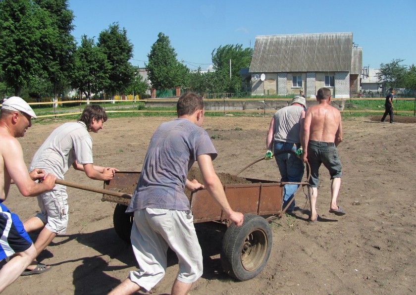 Целое лето “коробка” строилась жителями деревни. В конце августа 2010 года новый спортивный объект, который строили всем миром, торжественно открыли. Новая спортплощадка получилась универсальной, т.к. она предназначена для игры в футбол, волейбол и хоккей. На площадке смонтировано и ночное освещение, а рядом небольшой игровой городок.