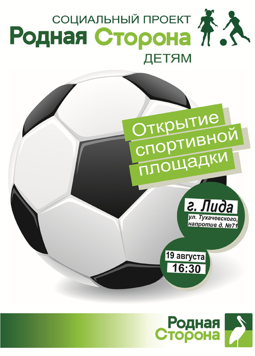 19 августа в Лиде состоится торжественное открытие мини-футбольного поля, построенного в рамках социального проекта «Родная Сторона – детям».