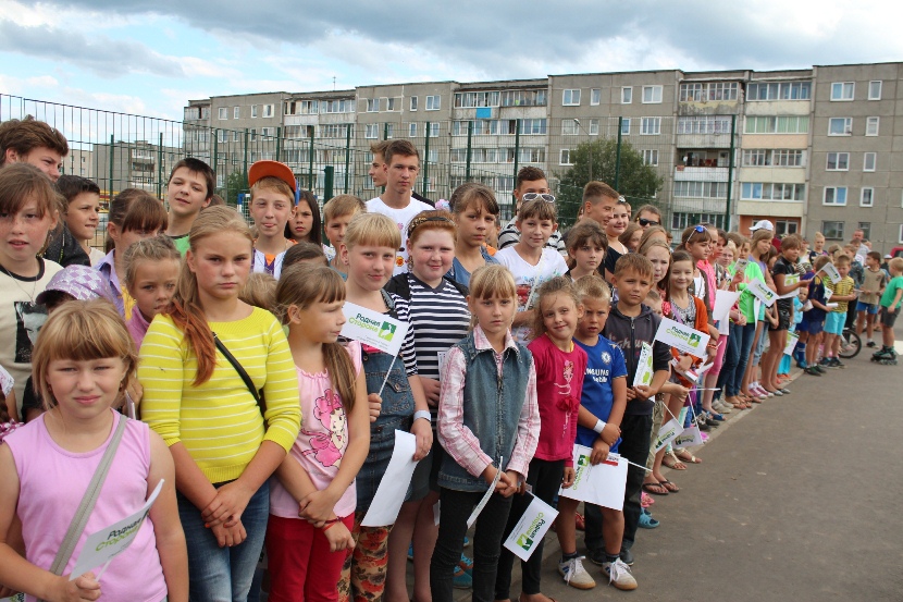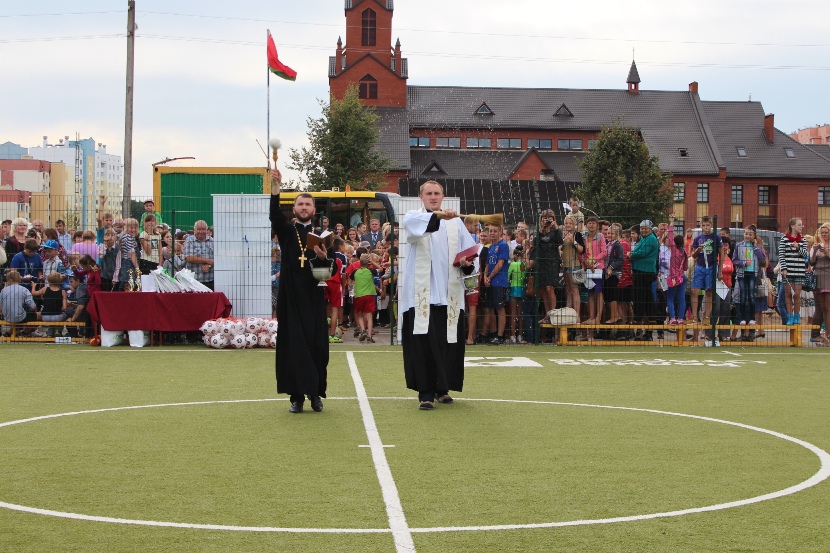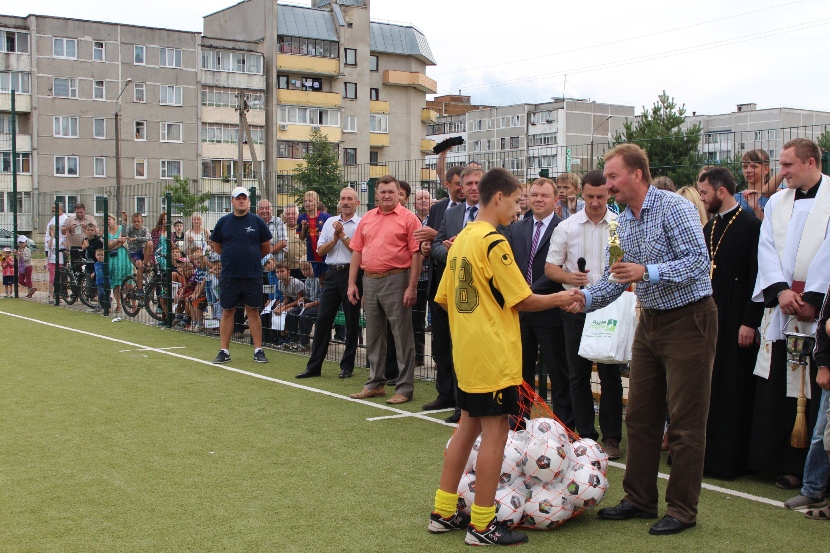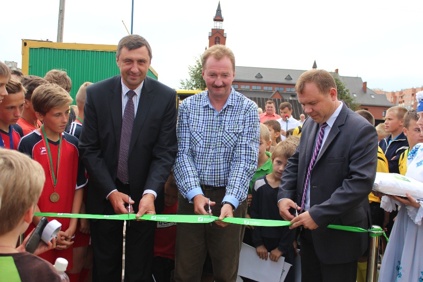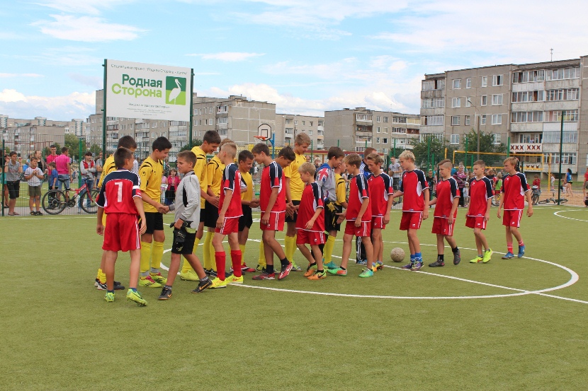 Церемония открытия нового поля в Лиде прошла в праздничном формате.Всем присутствующим подарили настоящий спортивный праздник. Почетные гости мероприятия перерезали ленточку, а юные футболисты сразились в товарищеском матче.Честь перерезать ленточку была предоставлена председателю Лидского райисполкома – Александру Островскому, заместителю председателя Ассоциации «Белорусская федерация футбола» - Олегу Чикуну и руководителю торговой сети «Родная Сторона» по Гродненскому регионуВиктору Сыревичу. В конце мероприятия — самая приятная его часть — церемония награждения и вручения подарков от торговой сети «Родная Сторона». Подарки получили все участники матча.