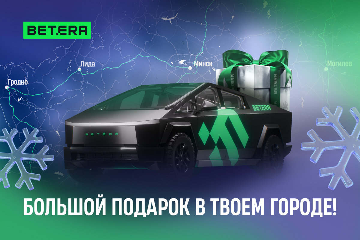Этой зимой Betera превращает Беларусь в настоящую новогоднюю карту чудес. По стране проедет BETERATRUCK — брендированный Tesla Cybertruck Cyberbeast — с огромным подарком в кузове и мешком сюрпризов для жителей!